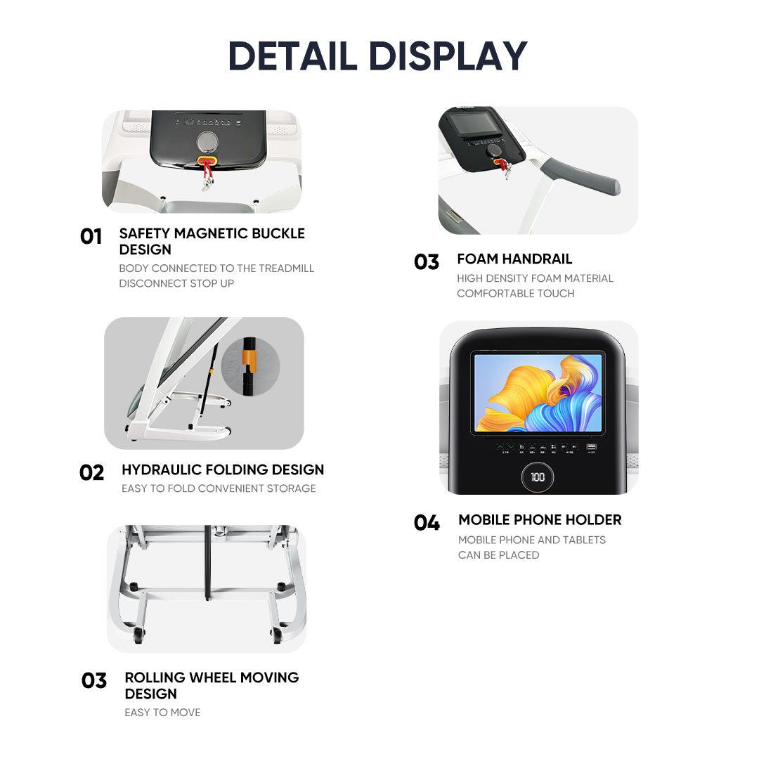- Soft Drop Technology: Folding and opening the treadmill becomes a breeze with our soft drop Technology