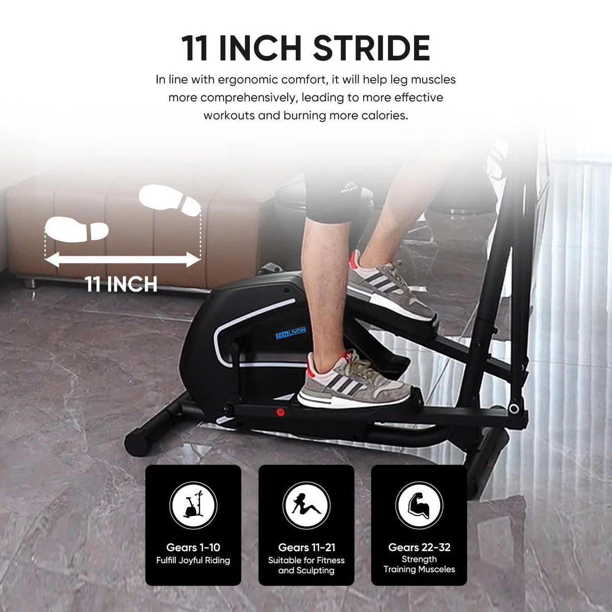 - 11 Inch Stride: In line with ergonomic comfort, it will help leg muscles more comprehensively, leading to more effective workouts and burning more calories.